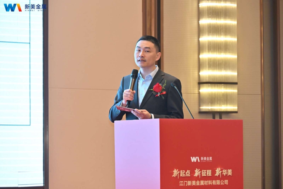 山東精翔總經理王永作為公司合作伙伴代表發(fā)言,他對新美金屬的盛大開業(yè)表示熱烈祝賀,并高度贊揚了新美金屬在金屬材料領域展現(xiàn)出的專業(yè)實力和創(chuàng)新能力。王永對雙方緊密合作建設的新產線成果給予了高度肯定,并表示期待未來雙方進一步深化合作,攜手共進,實現(xiàn)互利共贏的美好愿景。